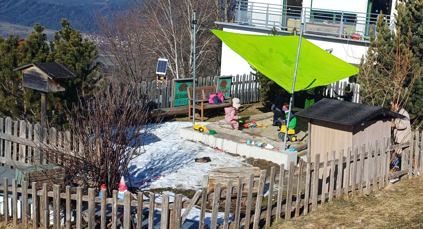Direkt vor der Mondgruppe befindet sich der öffentliche Spielplatz mit einer großen Sandkiste.