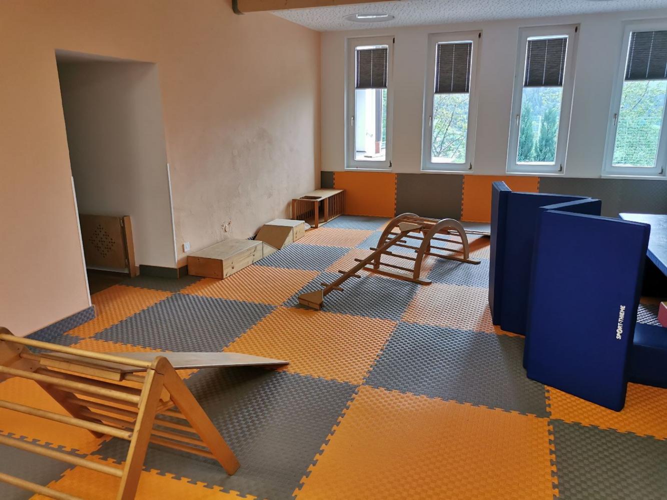Wir haben zwei Bewegungsräume, einen in der Mondgruppe mit einem Motorik-Bereich für 1-4Jährige, und ein neuer Bewegungsraum im ehemaligen Gemeindesaal.