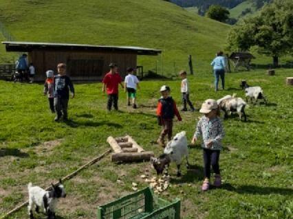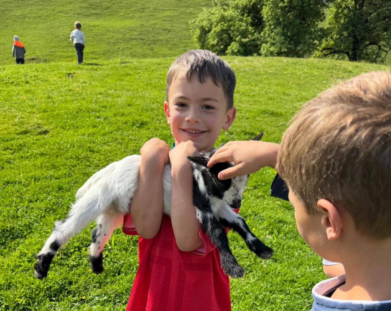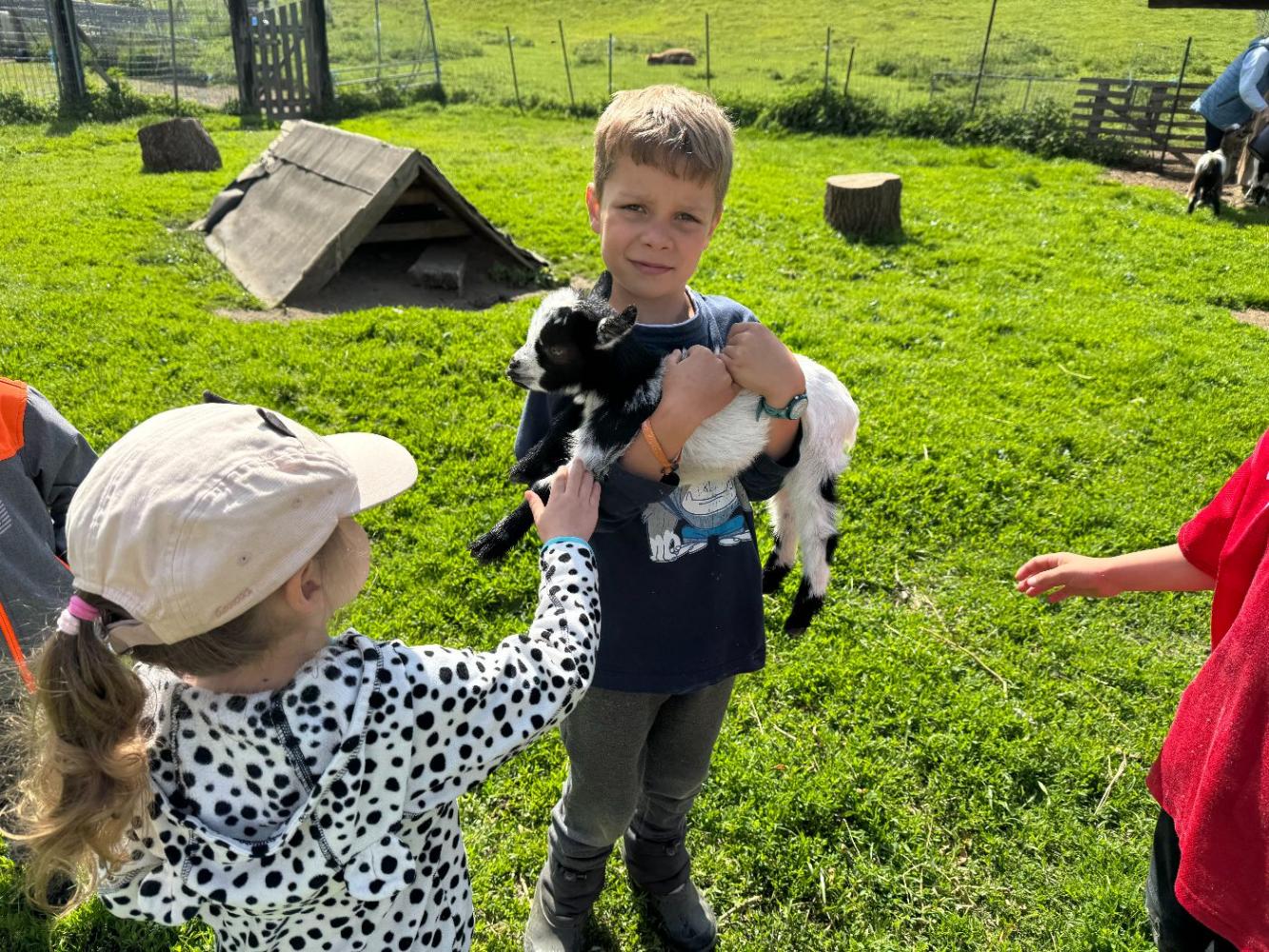 Anschließend durften wir zu den zahlreichen Tieren: Es gab Schafe, Ziegen, Babyziegen, Hennen, Wachteln, Esel, Pferde und Hasen.