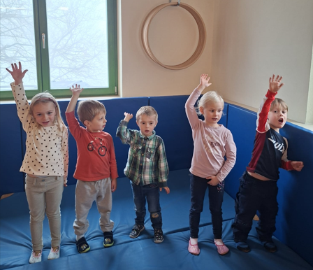mit Grobmotorik, um Stimme, Körpersprache und Rhythmus zu stärken.