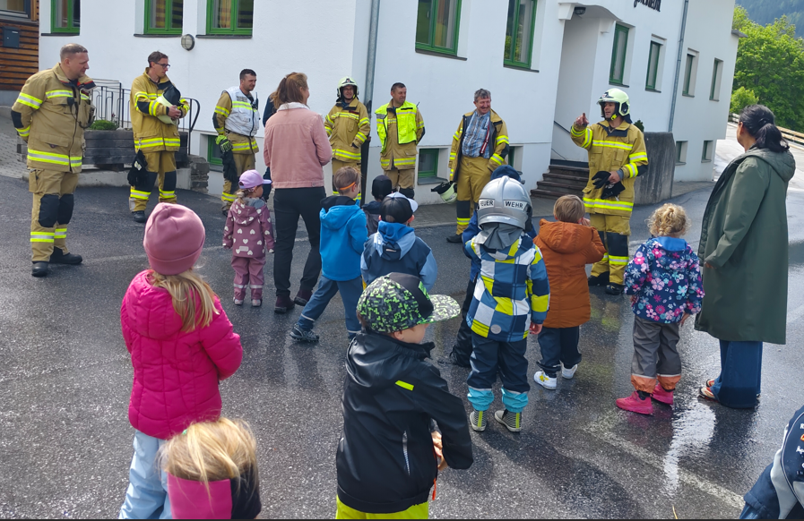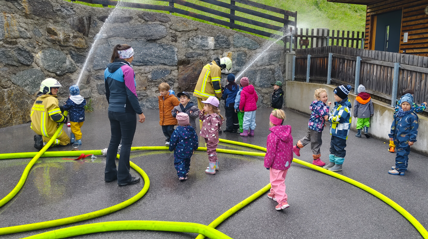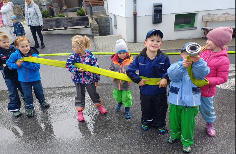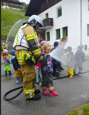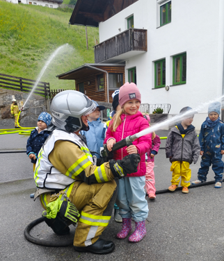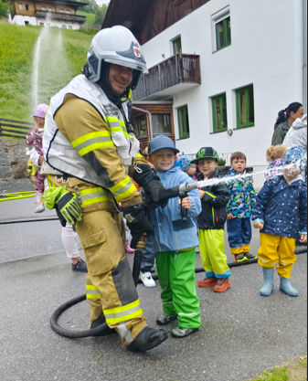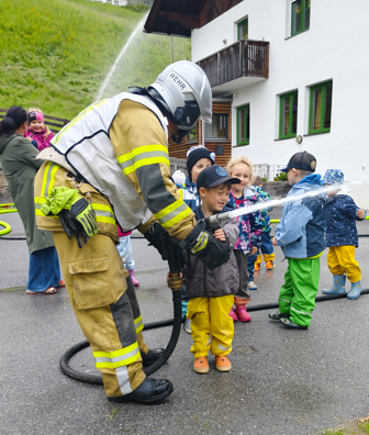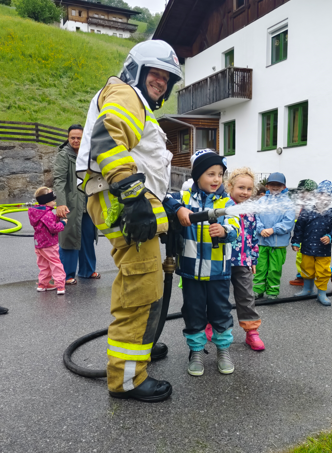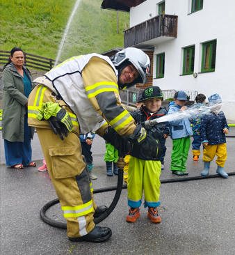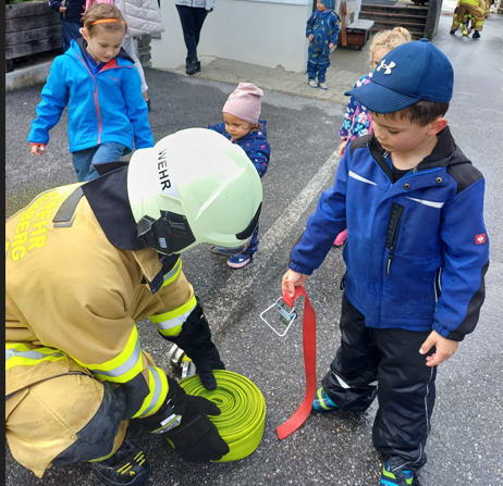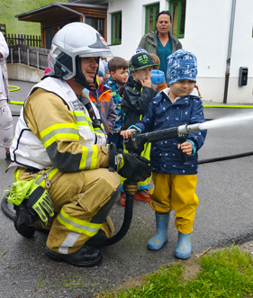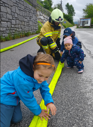 Nach dem offiziellen Teil nahmen sich die Männer noch sehr viel Zeit für alle Kindergartenkinder, es durfte gelöscht werden, es wurden interessierten Kindern Einzelheiten gezeigt und erklärt, auf sehr nette und kindgerechte Weise. Die Kinder durften dann auch beim Aufräumen mithelfen und bekamen einen Einblick ins genaue, exakte Arbeiten.