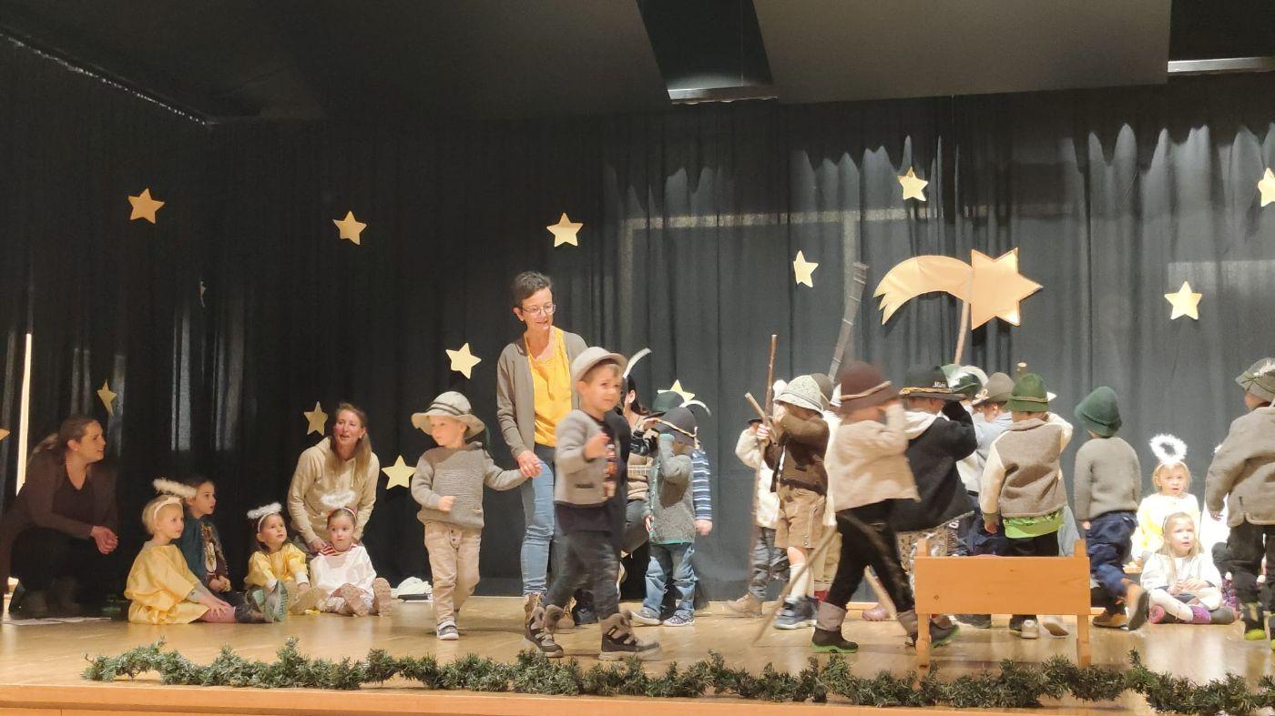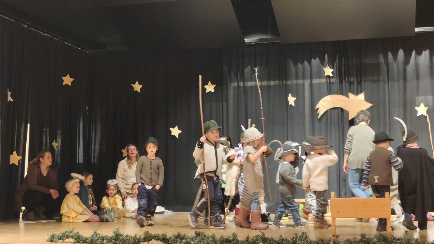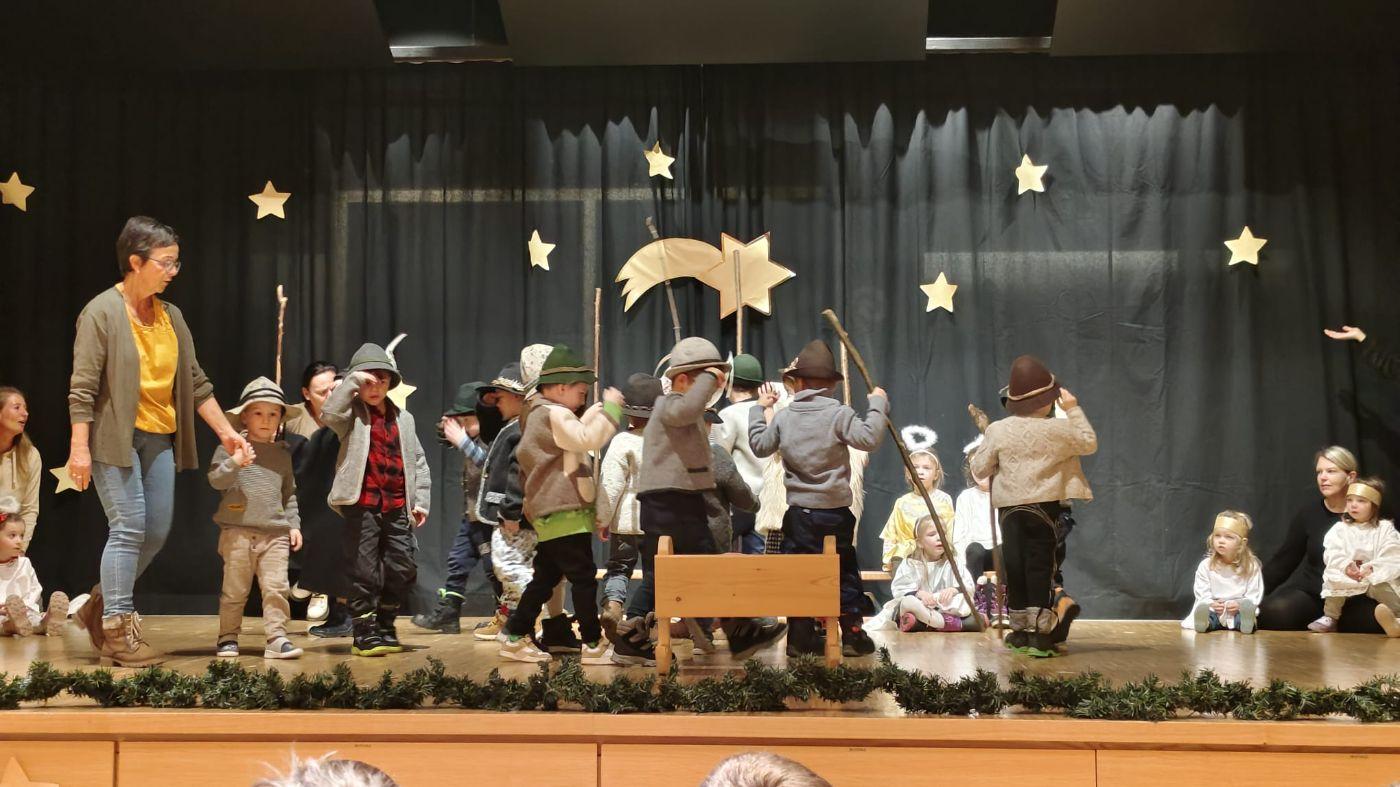 Die Engel verkündeten die Geburt den Hirten auf dem Feld. Ein heller Stern zeigte ihnen den Weg zum Stall, und voller Freude kamen sie, um das Jesuskind zu bejodeln.